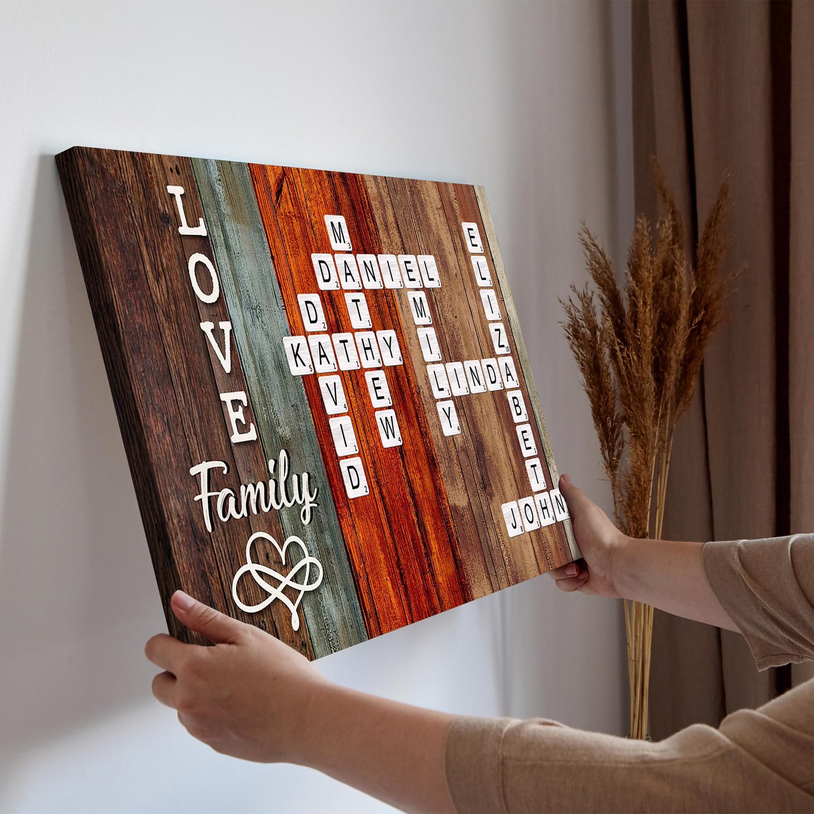Unlike mass-produced art, this canvas is fully customizable. Whether your family is small, blended, or big, the crossword design arranges every name beautifully, symbolizing how each individual is a piece of the family puzzle.