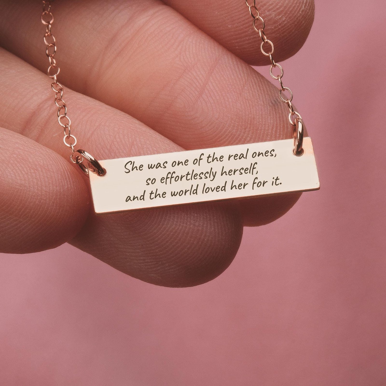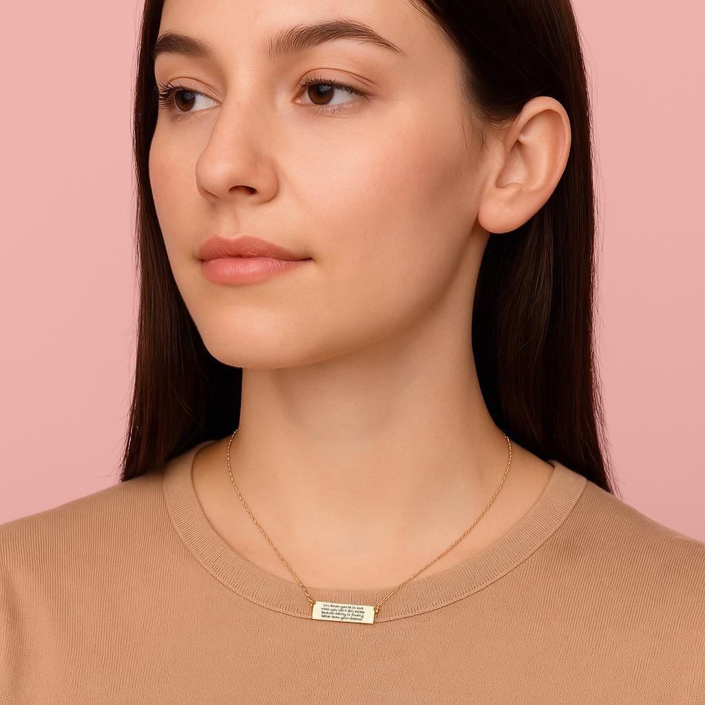 Jewelry is always special, but when it carries a message of love, strength, or memory, it becomes unforgettable. The Custom Quote Bar Necklace allows you to etch your story into metal — whether that story is a phrase that inspires you, the date you met your soulmate, or the name of someone you hold dear.