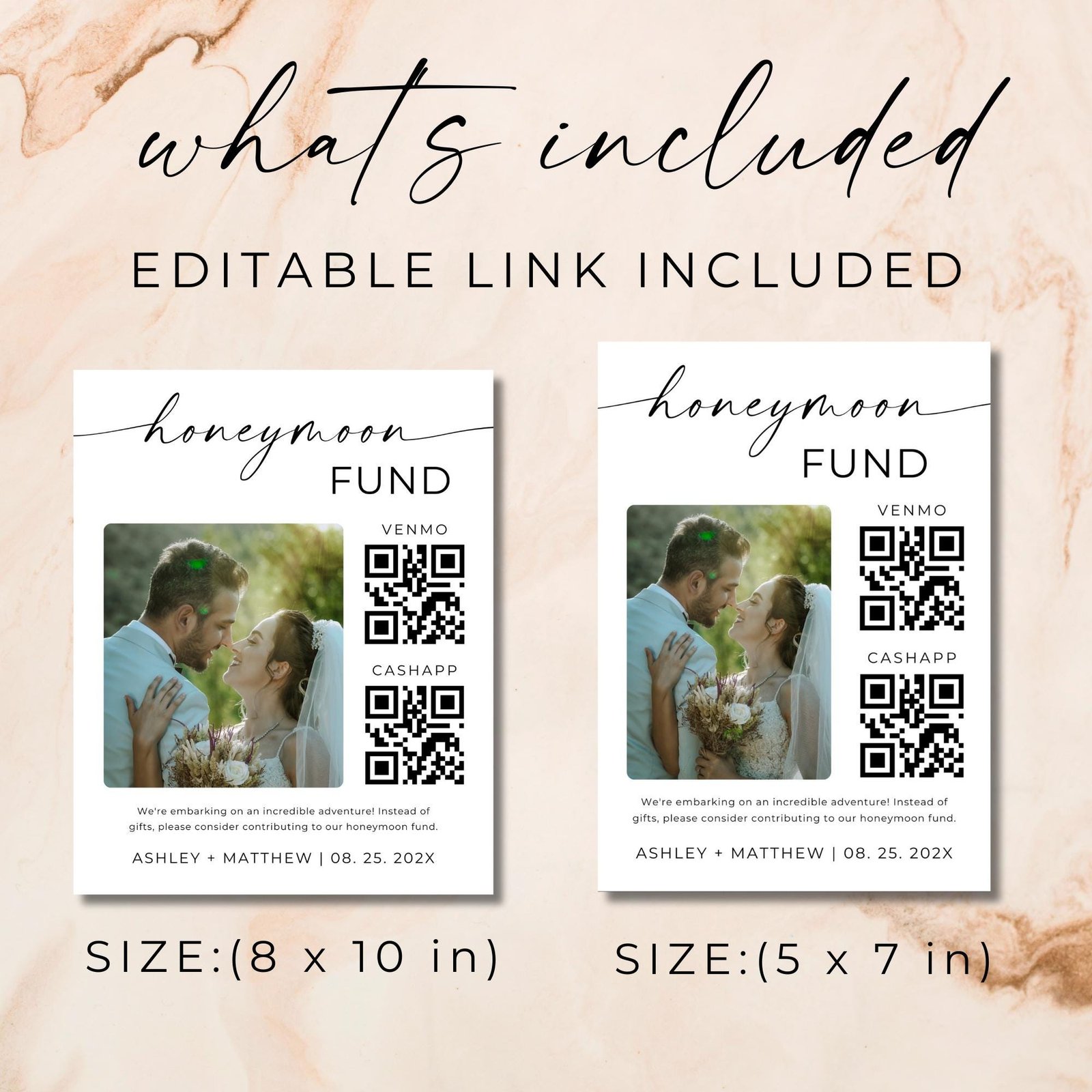 • 💌 Shareable Link Option In addition to printing, you can send the QR code or URL digitally to guests who couldn’t attend but still want to contribute. Great for virtual weddings and destination events!