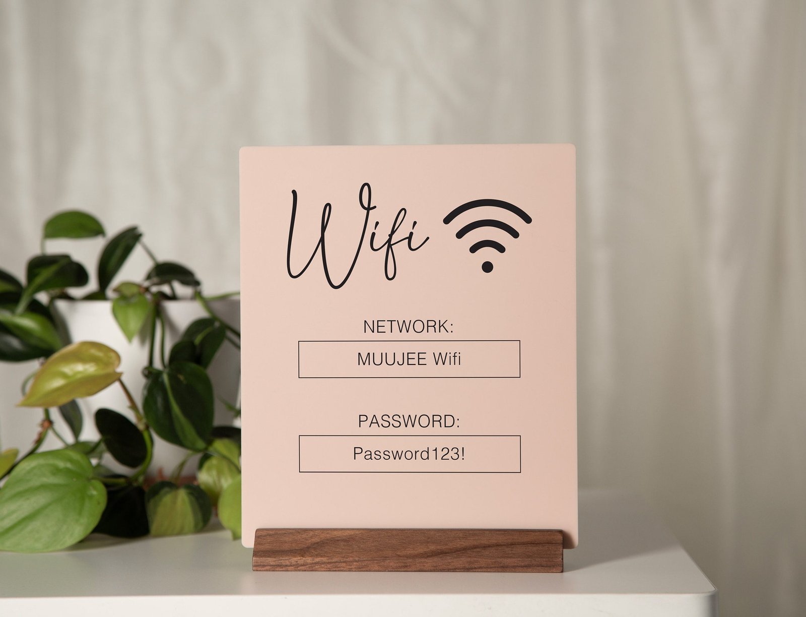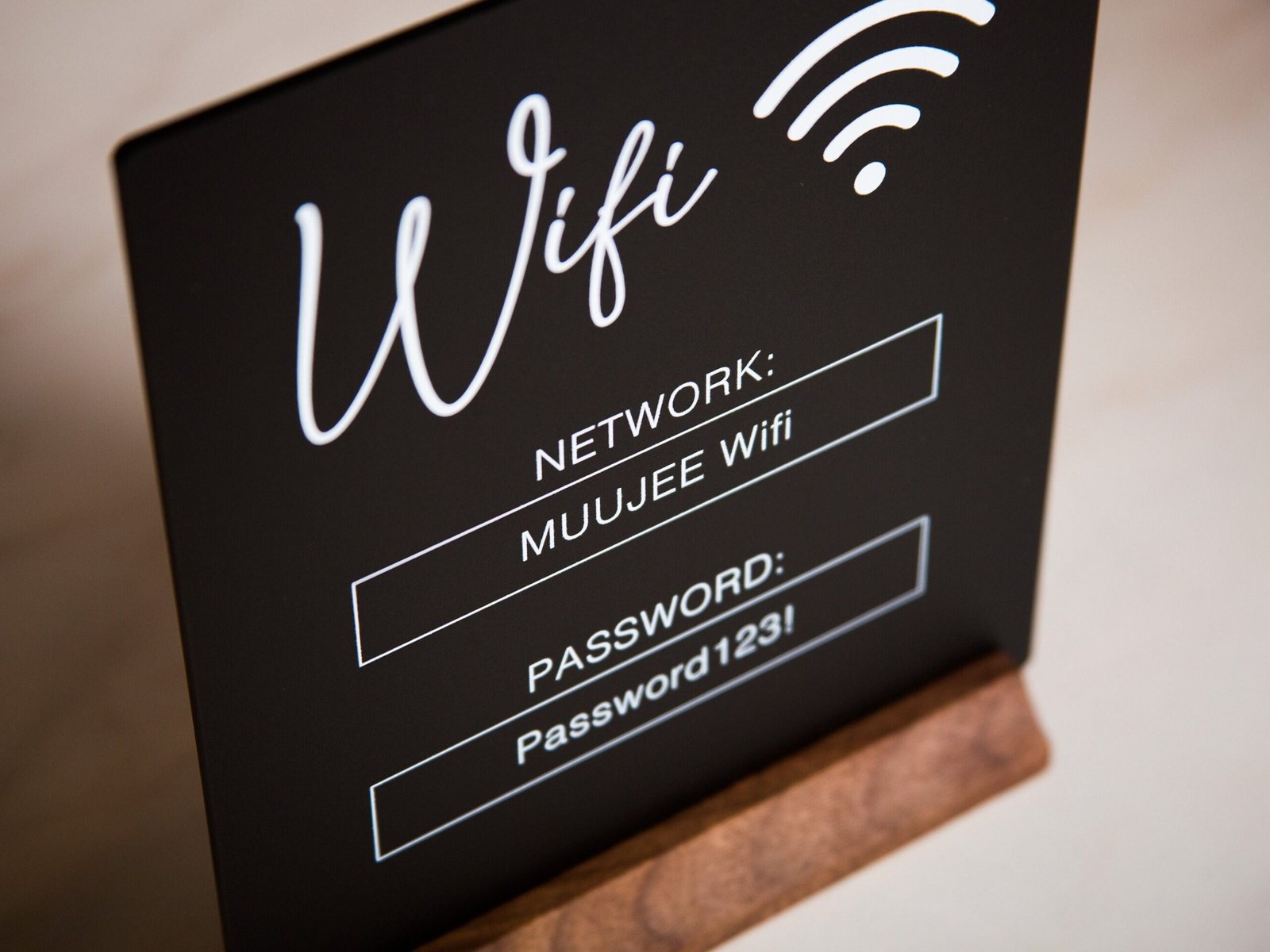 • Customizable design: Personalize the sign with your wifi network name and password, as well as any additional instructions or branding elements.