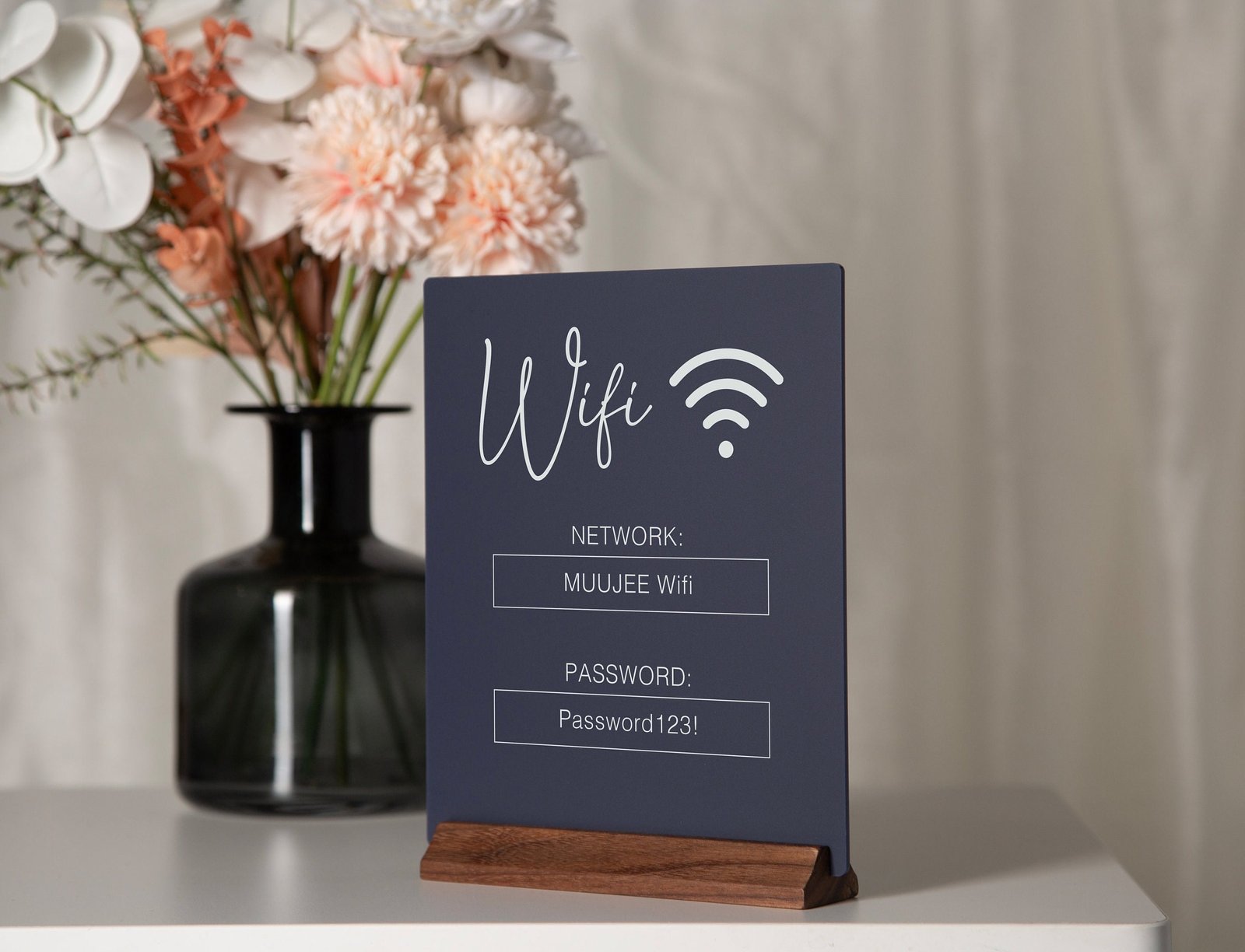 • Clear acrylic block: The sign is made from premium acrylic material, creating a durable and elegant display for your wifi password.